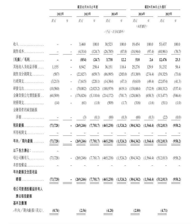 2025-12-26彩票平台,彩票网站,彩票APP下载:据MiniMax招股书,公司研发开支于2022年、2023年、2024年及截至2024年及2025年前三季度分别为1060万美元、7000万美元、1.89亿美元、1.39亿美元及1.8亿美元,总计研发投入约为4.5亿美元(折合人民币约32亿元),主要包括模型训练涉及的云服务费用。研发开支占收入的百分比由2023年的2000%以上降至2024年的619.1%,并进一步降至截至2025年9月30日止九个月的337.4%。